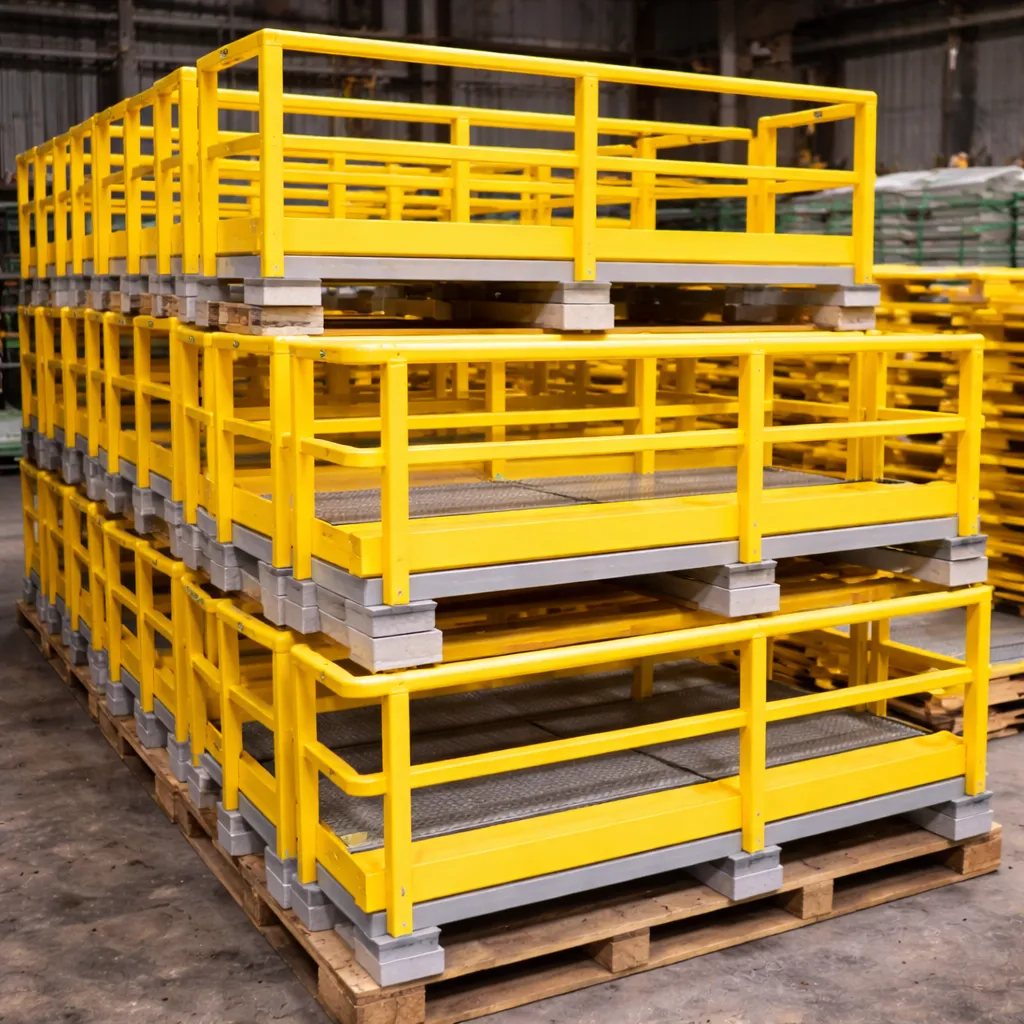 O guarda-corpo em PRFV é amplamente utilizado em conjunto com plataformas industriais, escadas e passarelas. O projeto considera a compatibilidade dimensional e estrutural com essas estruturas, garantindo integração adequada e funcionamento eficiente do sistema de proteção.