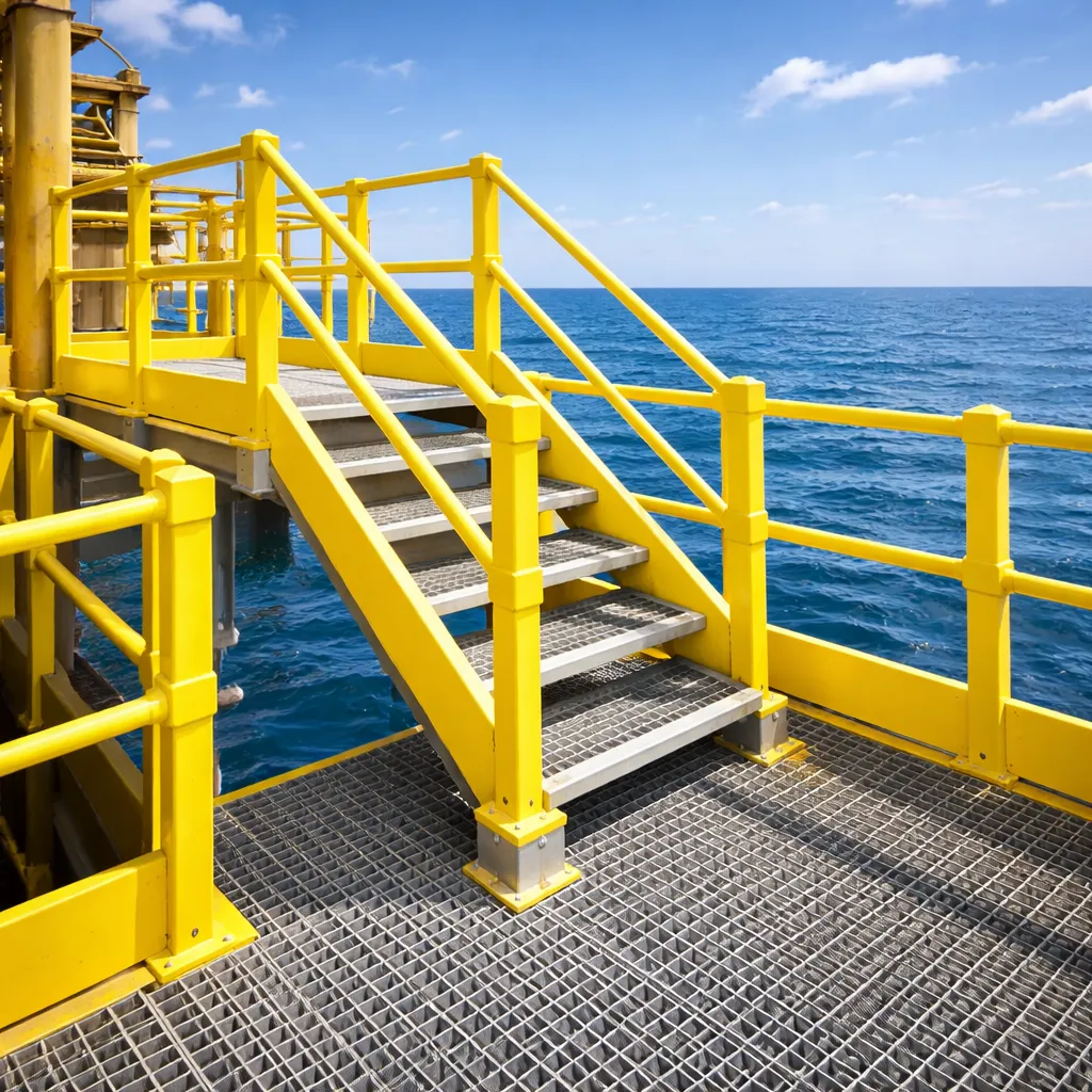 Do ponto de vista da manutenção, plataformas em fibra de vidro apresentam excelente desempenho, exigindo apenas inspeções periódicas para verificação de integridade estrutural, mantendo segurança e funcionalidade ao longo do tempo.