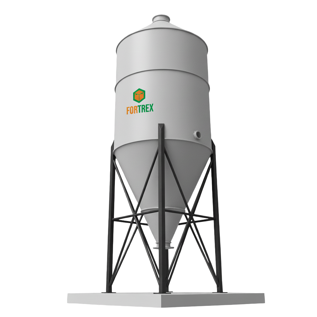Fabricado em PRFV (Plástico Reforçado com Fibra de Vidro), o silo apresenta alta resistência mecânica, leveza estrutural e estabilidade térmica, sendo ideal para aplicações industriais, agrícolas e químicas.