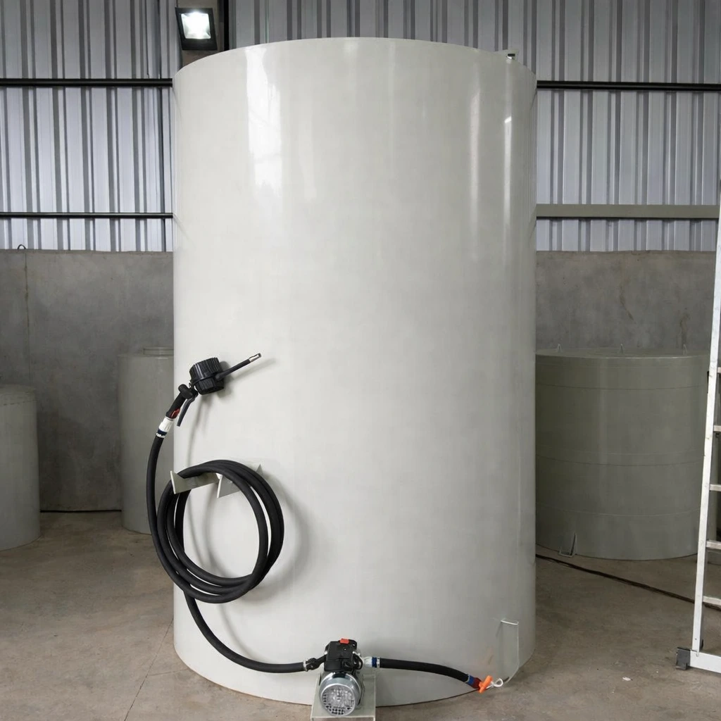 O projeto considera a compatibilidade química do PRFV com a solução armazenada, evitando contaminações, reações indesejadas ou degradação do produto ao longo do tempo. A retirada do líquido pode ocorrer por gravidade ou por meio de bombas externas, integradas ao sistema do cliente, garantindo operação segura e controlada.