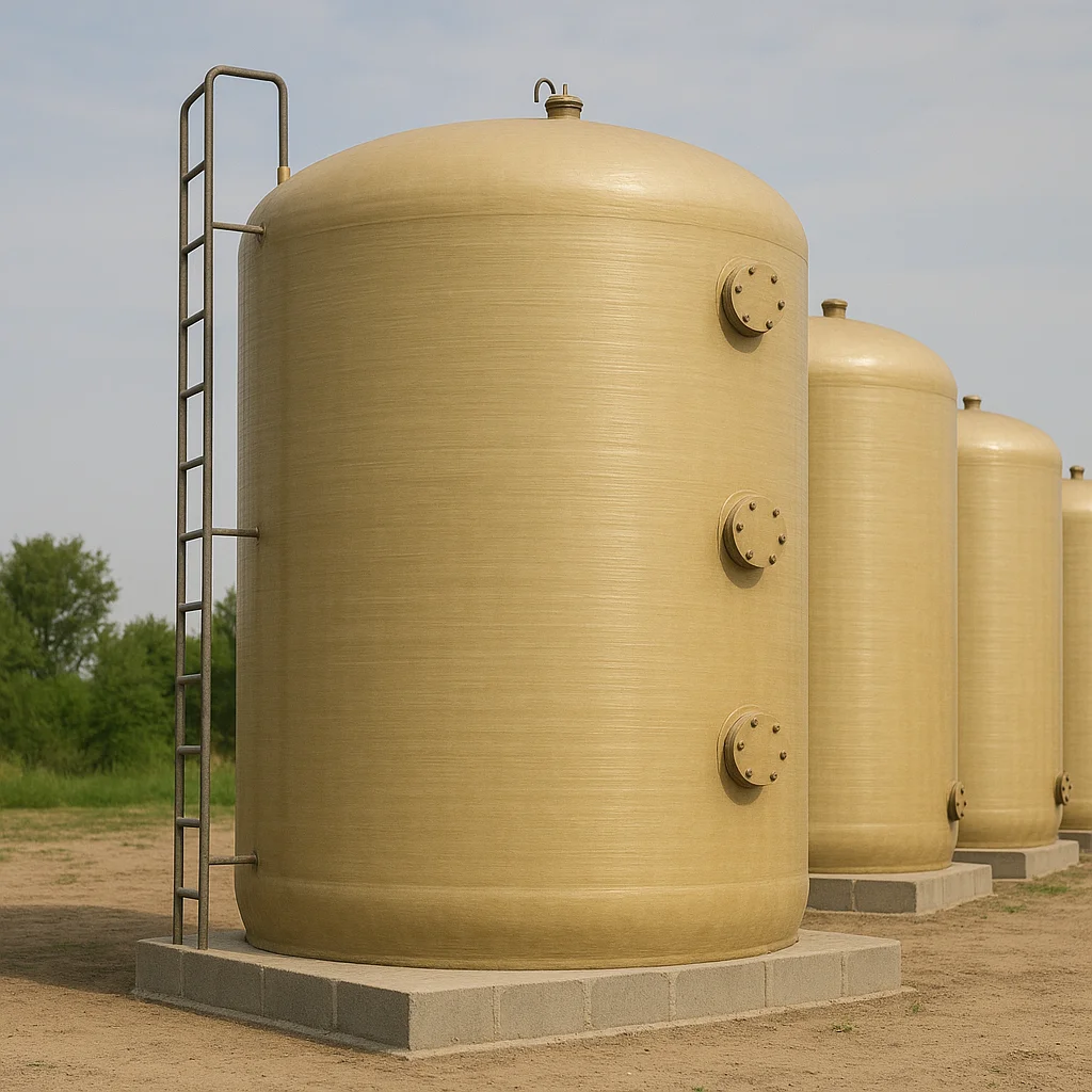 O tanque para óleos funciona como um reservatório estanque, projetado para armazenar líquidos de média e alta viscosidade com segurança e estabilidade. O corpo em PRFV é composto por camadas de fibra de vidro e resina viniléster, o que confere impermeabilidade total e resistência química ao contato com hidrocarbonetos, solventes e aditivos presentes nos óleos.