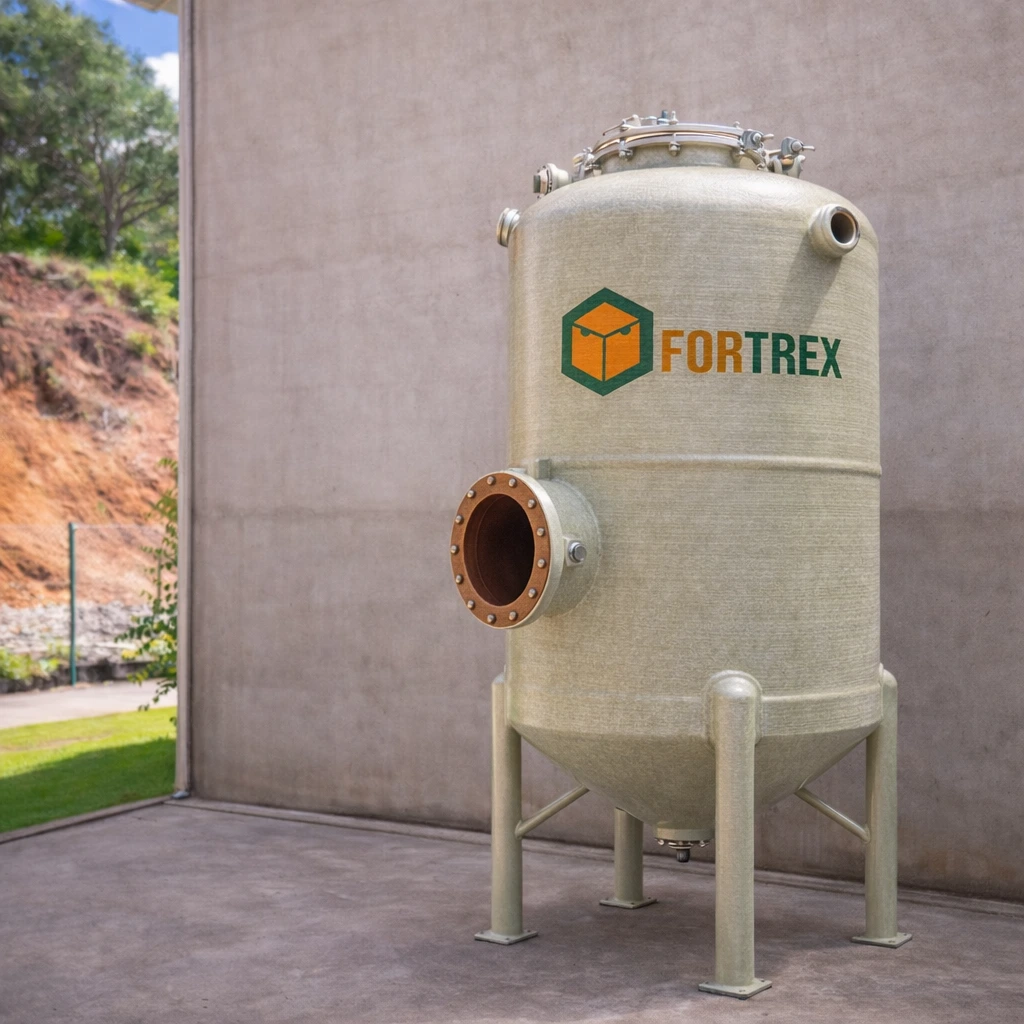 O vaso de pressão de PRFV é um equipamento industrial projetado para conter, conduzir ou processar fluidos sob pressão de forma segura e controlada. Sua principal função é suportar pressões internas superiores à atmosférica, mantendo a integridade estrutural e a estabilidade operacional do sistema. Na Fortrex, o vaso de pressão é fabricado em PRFV, plástico reforçado com fibra de vidro, sendo indicado para aplicações industriais que exigem resistência química, durabilidade e confiabilidade em ambientes severos.